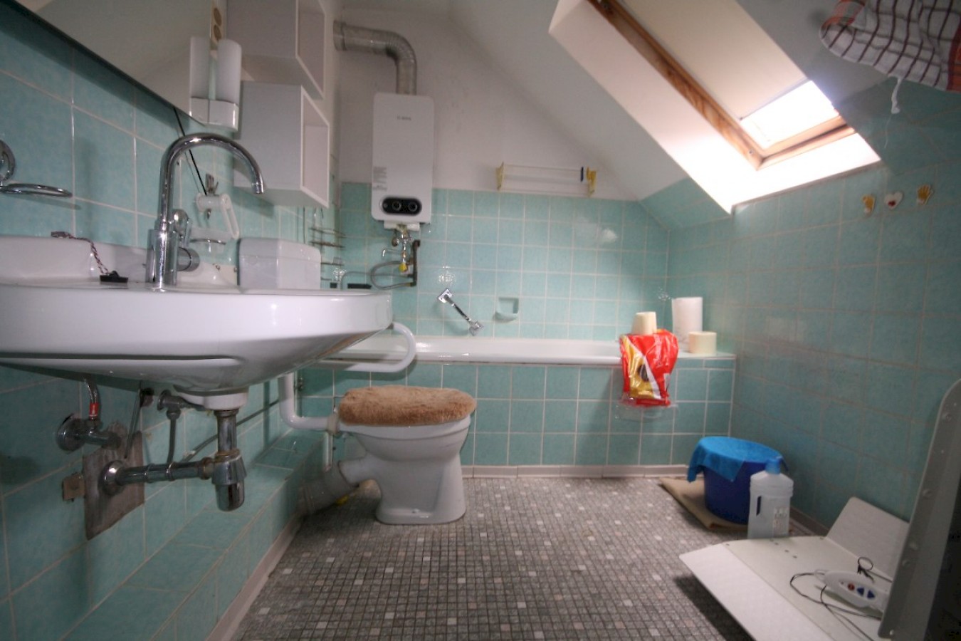 Die Heizung ist eine Junkers ZR 24 und läuft störungsfrei, ist jedoch bereits älter und darf bei einem Eigentümerwechsel innerhalb der Übergangsfrist für (min.) 2 Jahre weiter betrieben werden.