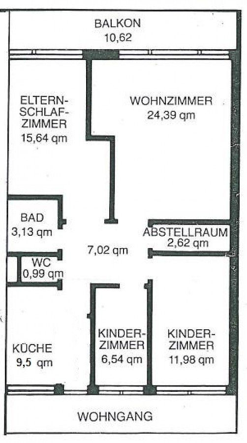 Die Wohnung ist 87m³ groß, verteilt auf 4 Zimmer.
