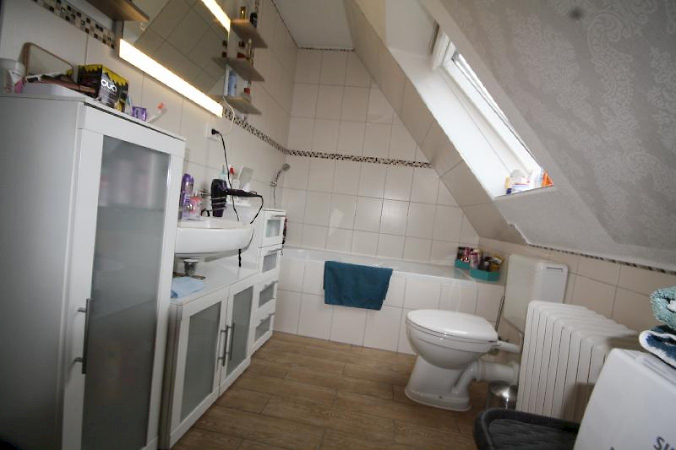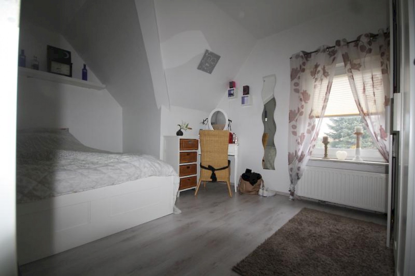 Wir vermieten das Obergeschoss eines Hauses mit 5 Zimmern, einem großen Garten, einer großen Garage mit großzügiger Auffahrt.