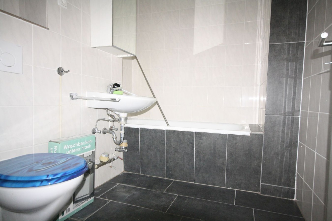 Die Wohnung ist neu renoviert, die Wände sind Raufaser Weiß, alle Böden sind in gepflegtem neuem Laminat. In Flur, Diele und im Bad sind Fliesen verlegt worden.