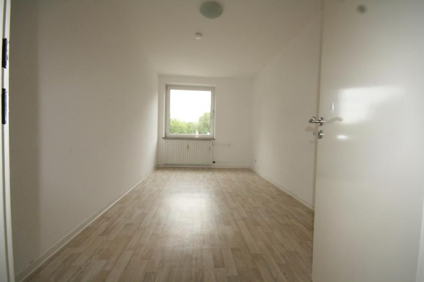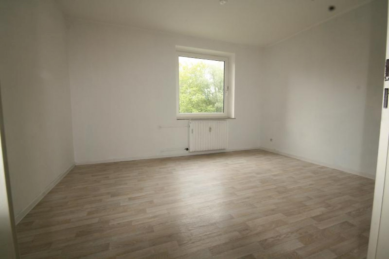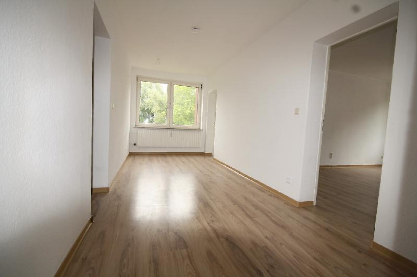Die Wohnung ist renoviert, die Wände sind Raufaser Weiß, alle Böden außer im Bad sind in gepflegtem Laminat.
