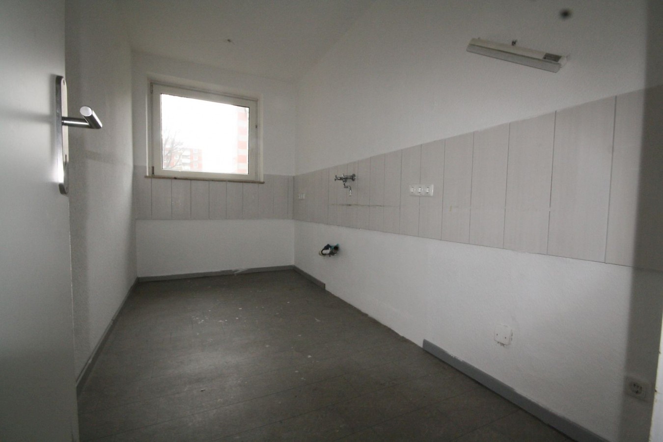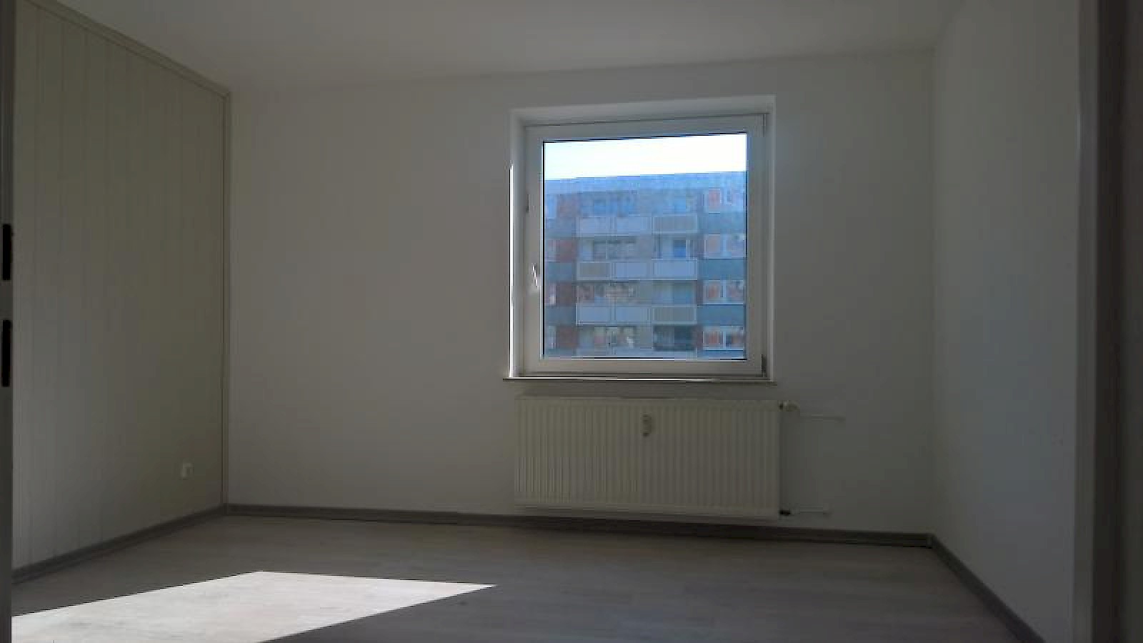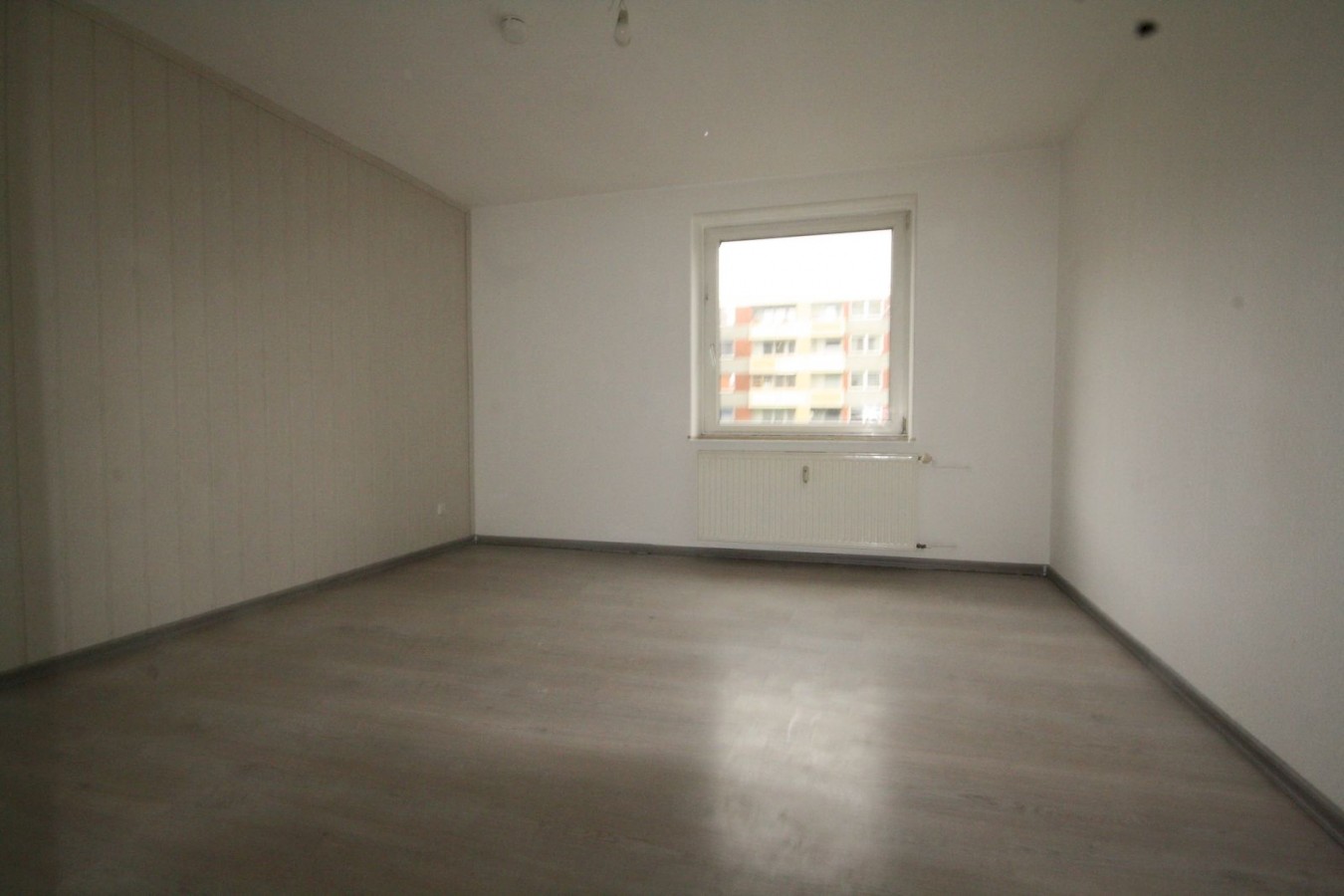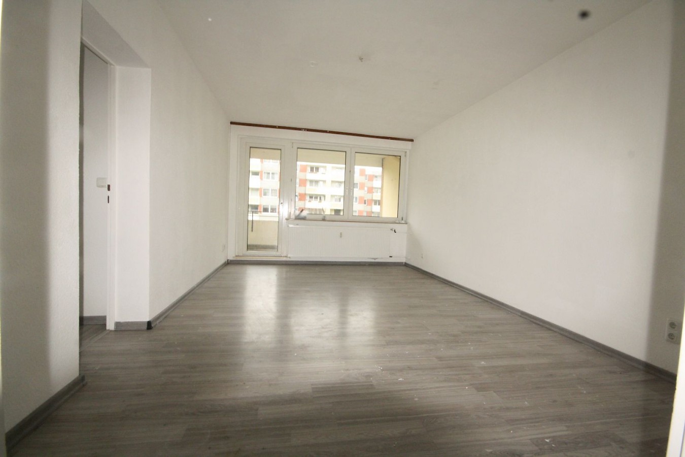 Alles ist in Weiß gestrichen, als Böden wurde einheitliches Laminat in Grau verlegt.